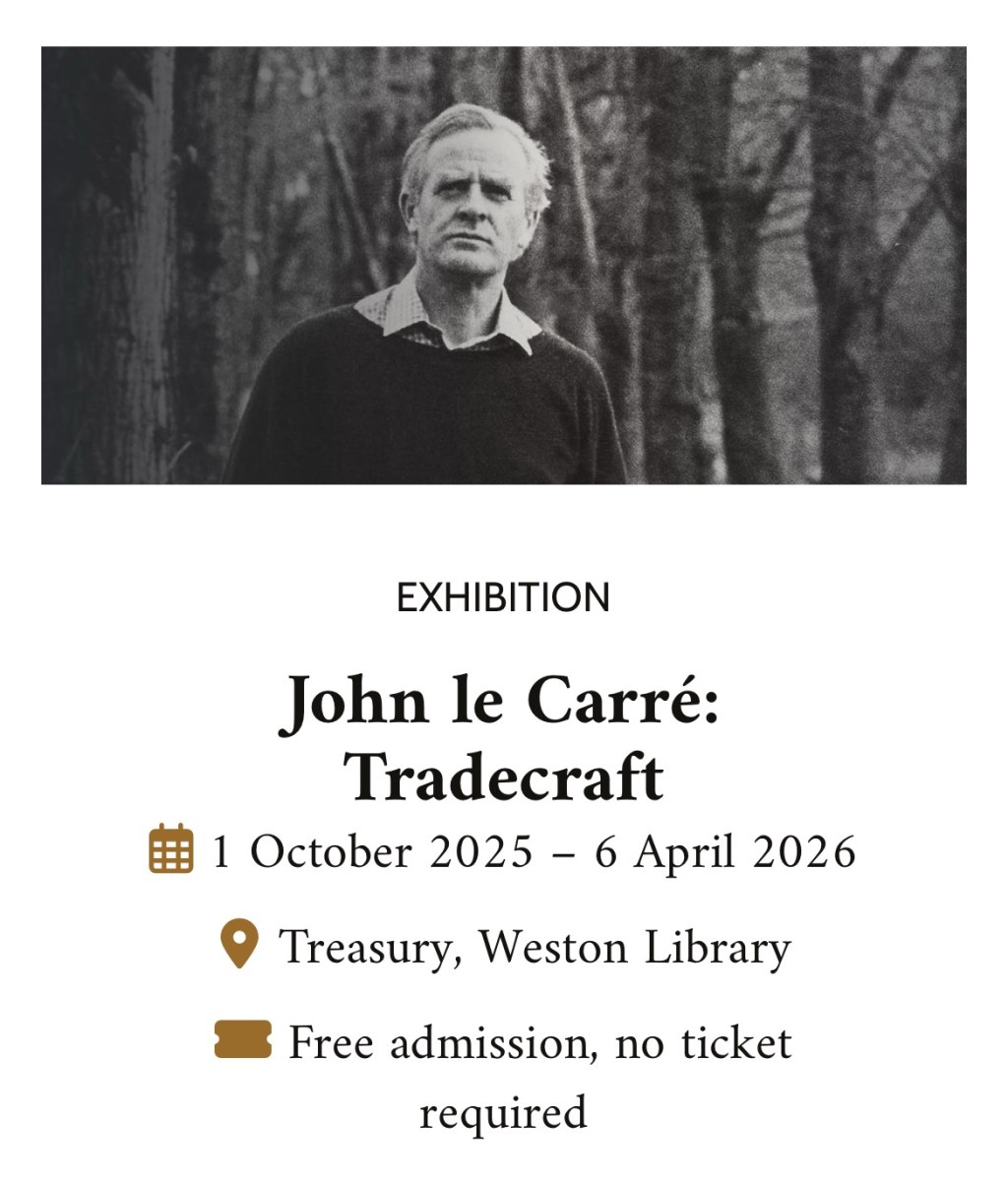 John le Carré: Tradecraft – The exhibition – https://visit.bodleian.ox.ac.uk/lecarre